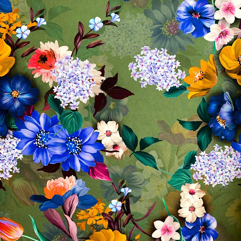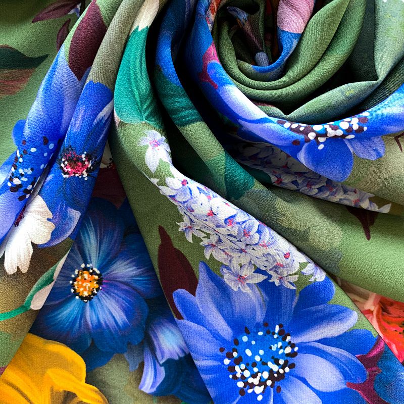 Крепдешин натуральный К32-240 травяная зелень принтованный в Ухте