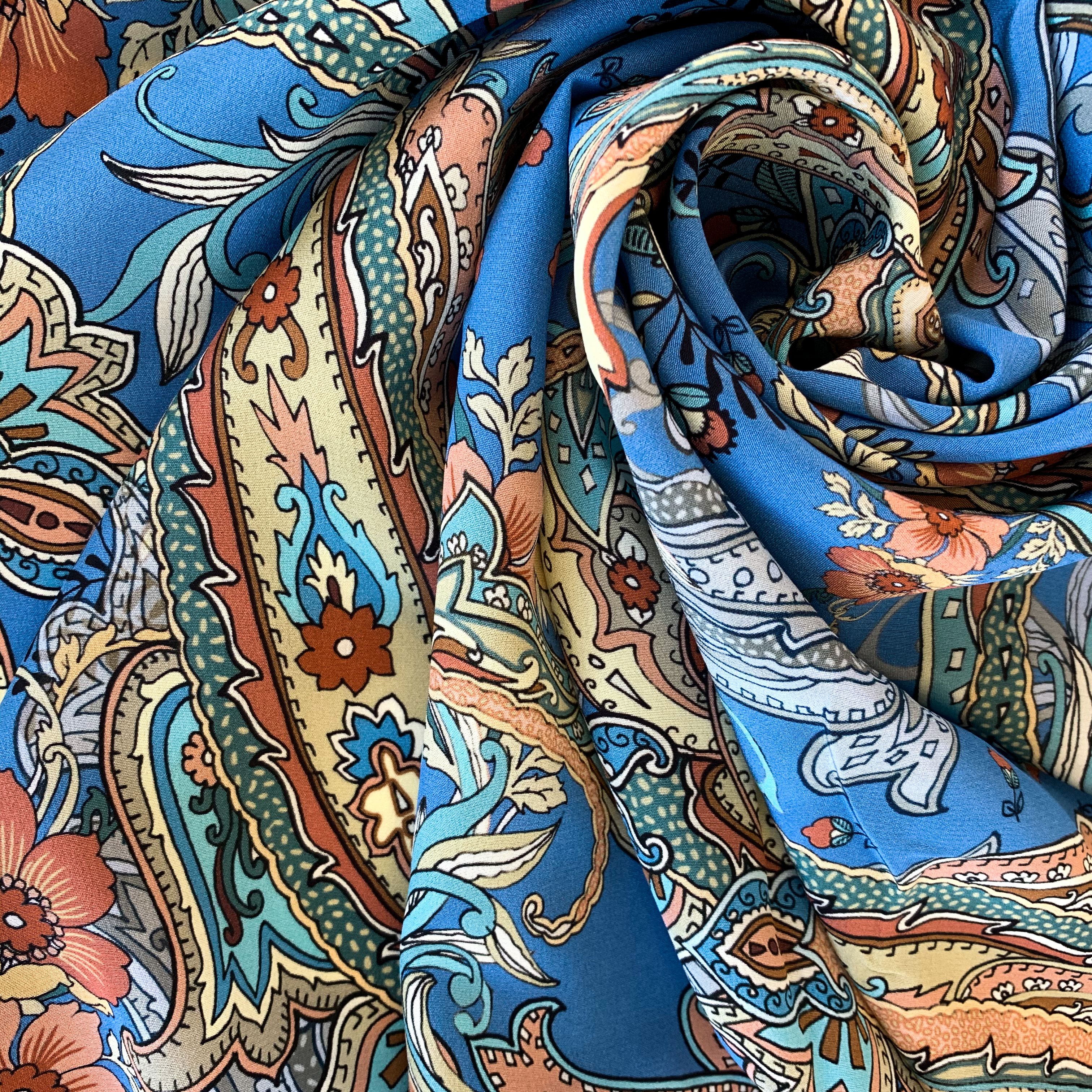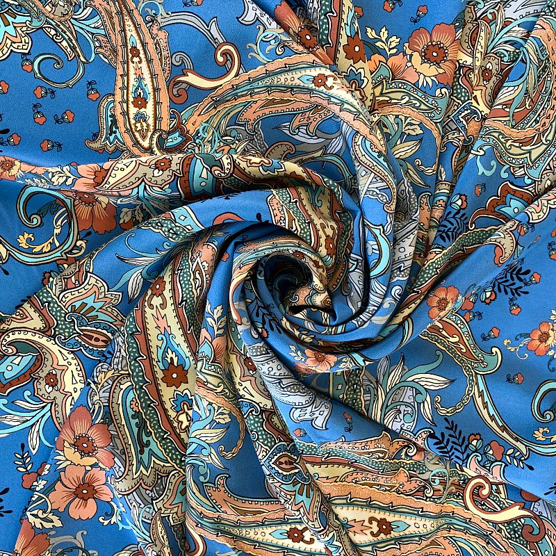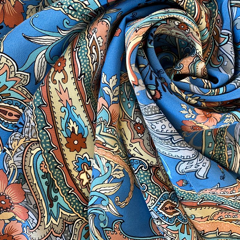 Крепдешин натуральный К32-250 голубой принтованный в Ухте