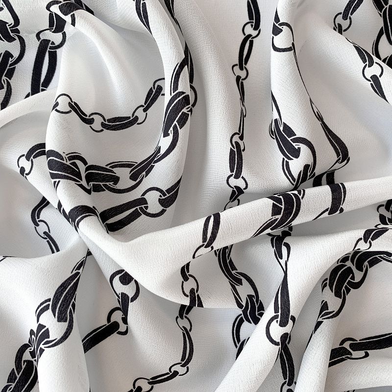 Крепдешин натуральный К32-322 белый принтованный