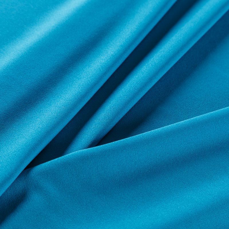 Крепдешин темно-бирюзового оттенка, тонкий, легкий, фактурный, приятный на ощупь. Очень пластичный, тянется за счет эластана в составе, прекрасно драпируется и струится. Ткань слегка просвечивает, можно использовать подклад. Идеально будет смотреться в платье, юбке, тунике, рубашке или блузке.