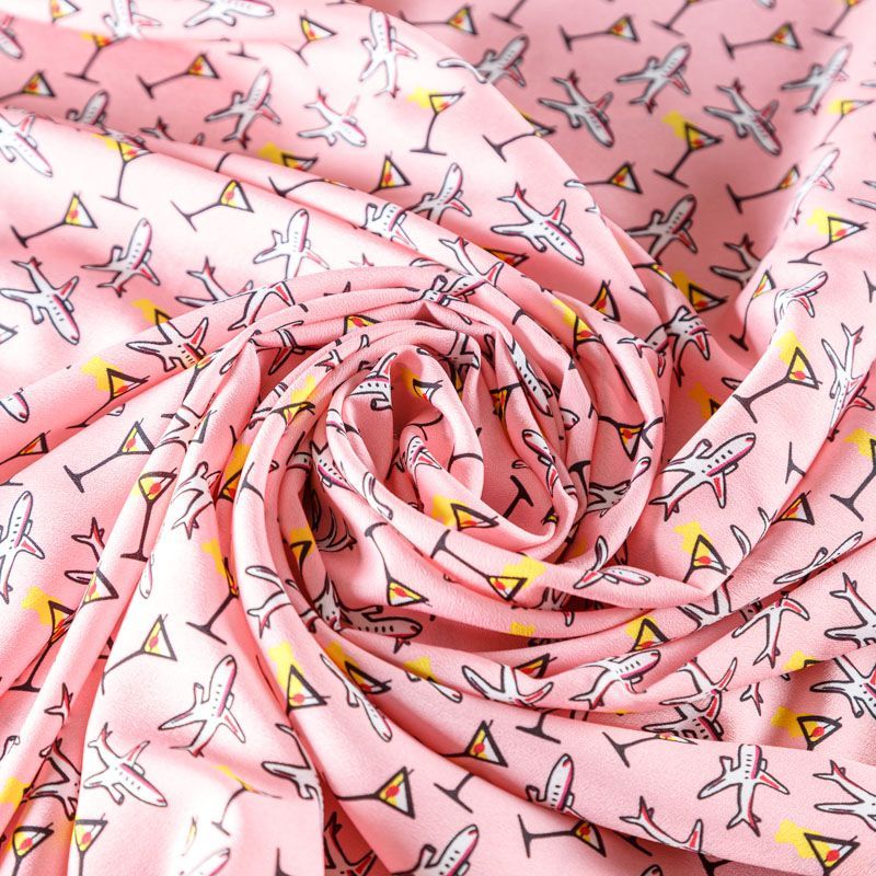 Крепдешин синтетический 029-08062 розовый принтованный в Ухте