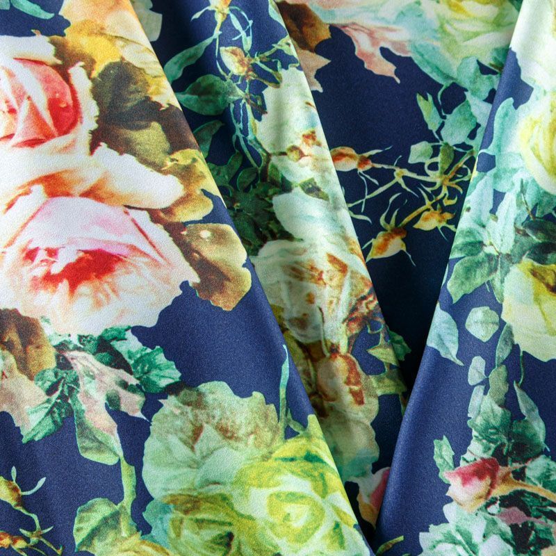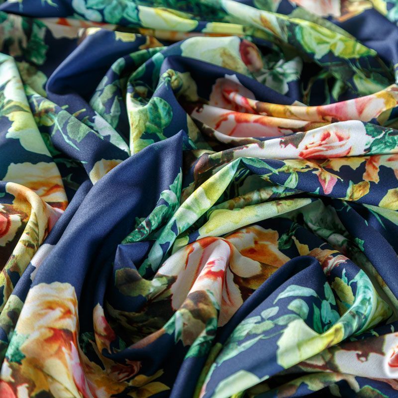 Крепдешин синтетический 029-08354 темно-синий принтованный в Ухте
