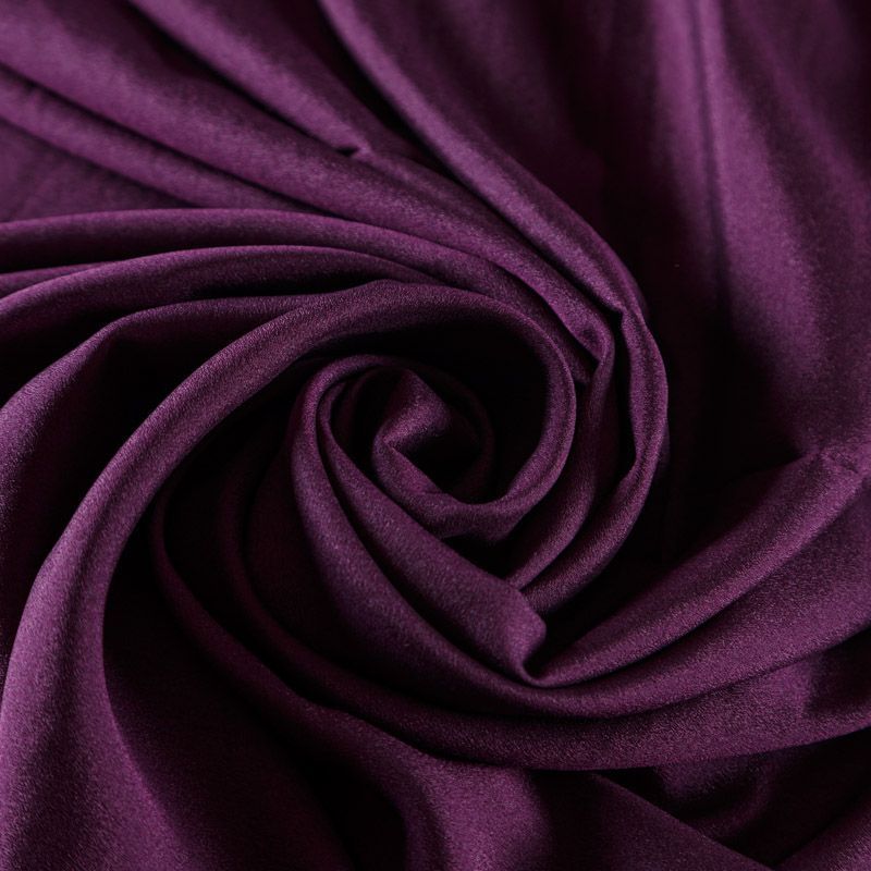Крепдешин благородного пурпурного оттенка, тонкий, легкий, фактурный, приятный на ощупь. Очень пластичный, тянется за счет эластана в составе, прекрасно драпируется и струится. Ткань слегка просвечивает, можно использовать подклад. Идеально будет смотреться в платье, юбке, тунике, рубашке или блузке.