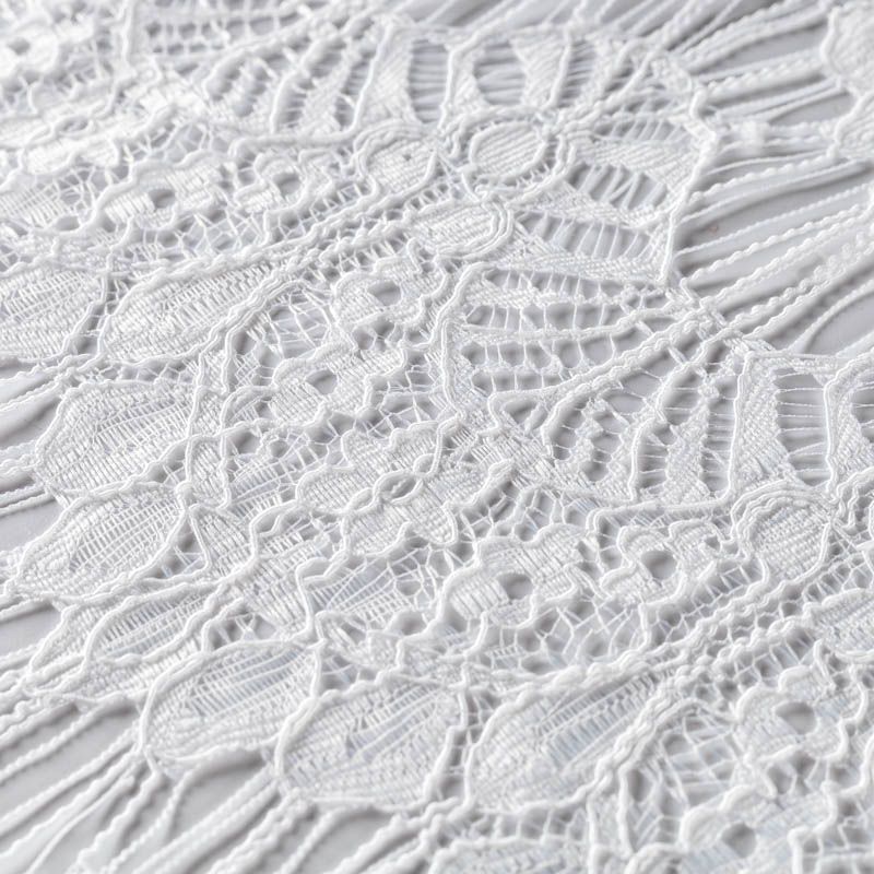 Ткань сквозной фактуры, она не имеет какой-либо тканной или сетчатой основы, а полностью соткана из нитей, создающий особенный рисунок, в целом, состоящий из небольшой ширины кружевных полосок, соединенных между собой тонкими нитями-ресничками, расположенными на одинаковом расстоянии между собой. Кружево можно использовать при пошиве самостоятельных изделий на подкладе (платья, топа, юбки, брюк), а также оно незаменимо в качестве отделки за счет фигурных фестонов.