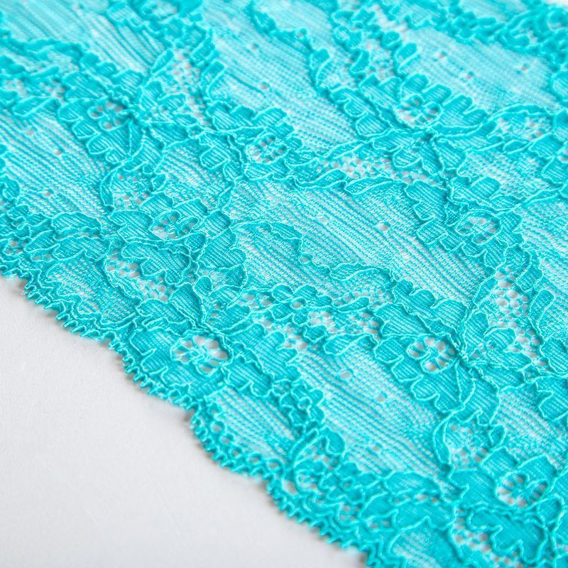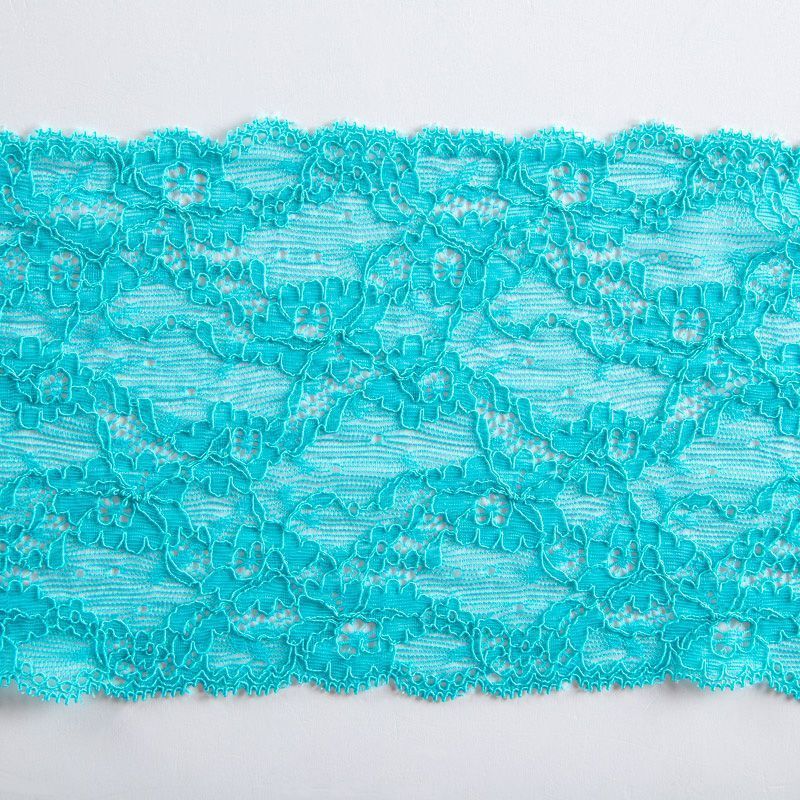 Эластичное кружево сочетает в себе мягкость, прочность и красоту, благодаря своей упругости оно долго не теряет первоначальную форму. Используется для пошива нижнего белья, а так же применяется как отделочный декор в одежде.