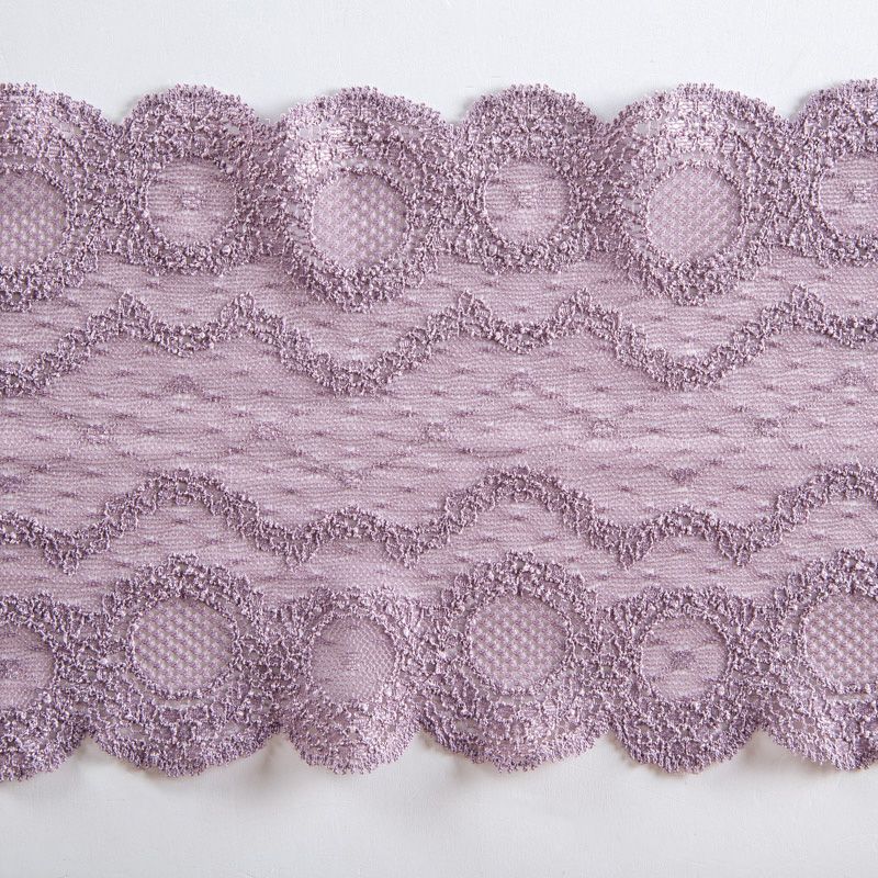 Эластичное кружево сочетает в себе мягкость, прочность и красоту, благодаря своей упругости оно долго не теряет первоначальную форму. Используется для пошива нижнего белья, а так же применяется как отделочный декор в одежде.
