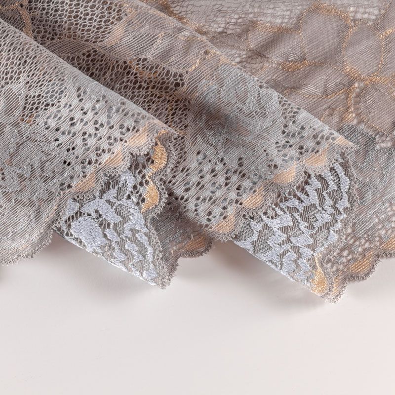Эластичное кружево сочетает в себе мягкость, прочность и красоту, благодаря своей упругости оно долго не теряет первоначальную форму. Используется для пошива нижнего белья, а так же применяется как отделочный декор в одежде.