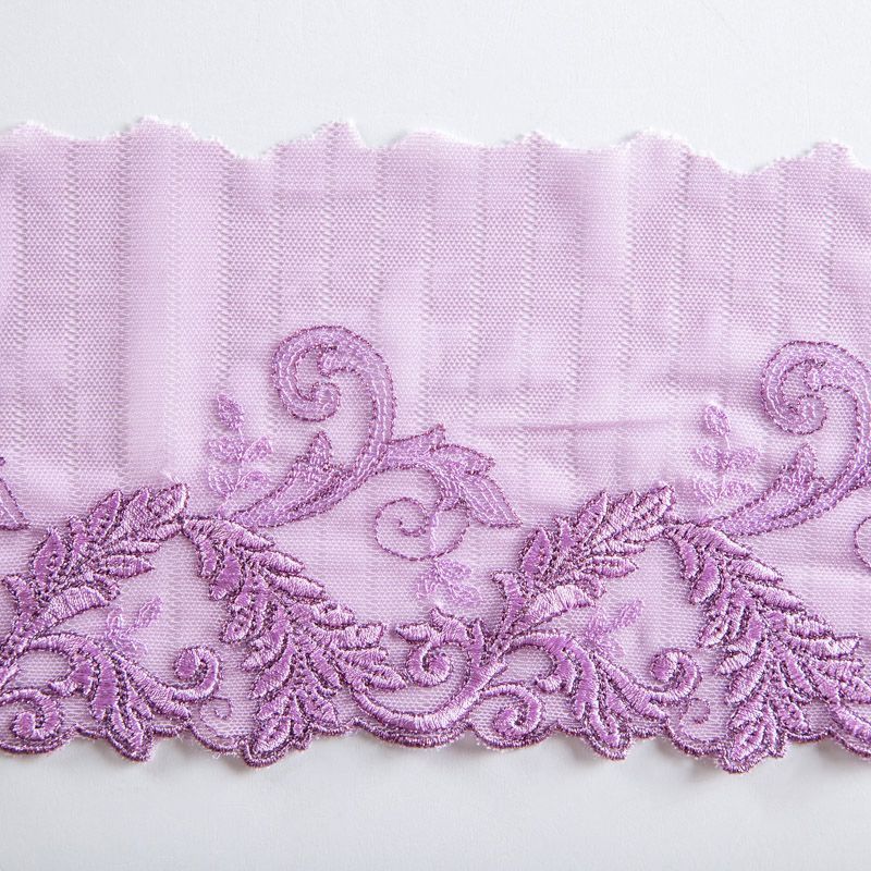 Эластичное кружево сочетает в себе мягкость, прочность и красоту, благодаря своей упругости оно долго не теряет первоначальную форму. Используется для пошива нижнего белья, а так же применяется как отделочный декор в одежде.