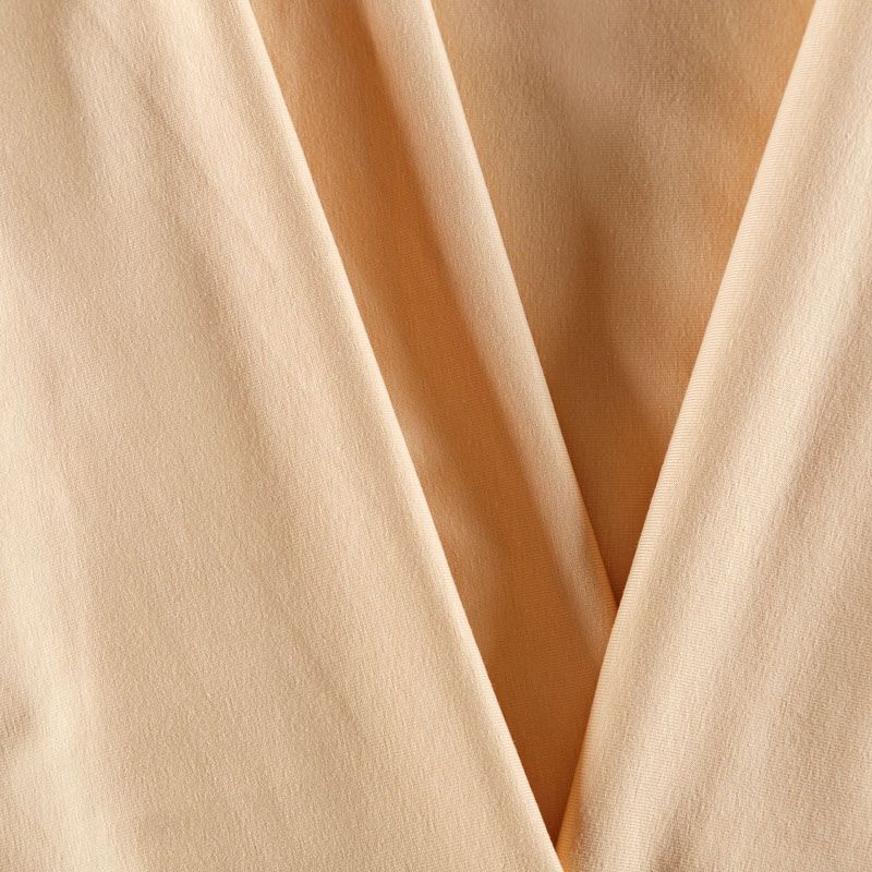 Мягкий однотонный трикотаж на хлопковой основе с добавлением эластана. Ткань средней плотности, эластичный, достаточно пластичный, с лицевой, и с изнаночной стороны гладкая, приятная к телу. Кулирка отлично подходит для пошива нижнего белья, изделий для детей, а также для спортивной и домашней одежды, пижамы.