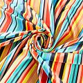 Итальянский бифлекс с разноцветными и разноразмерными полосками. Поверхность ткани матовая и гладкая. Отлично тянется, одежда из него не сковывает движения. Хорошо впитывает влагу и быстро высыхает, не вызывет аллергии и раздражения. Используется для пошива эстрадных, спортивных костюмов, купальников, боди.