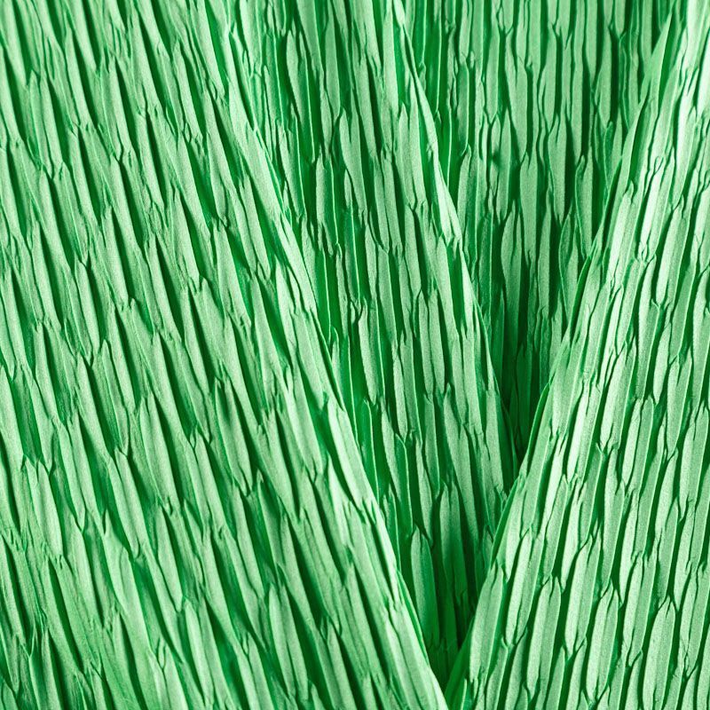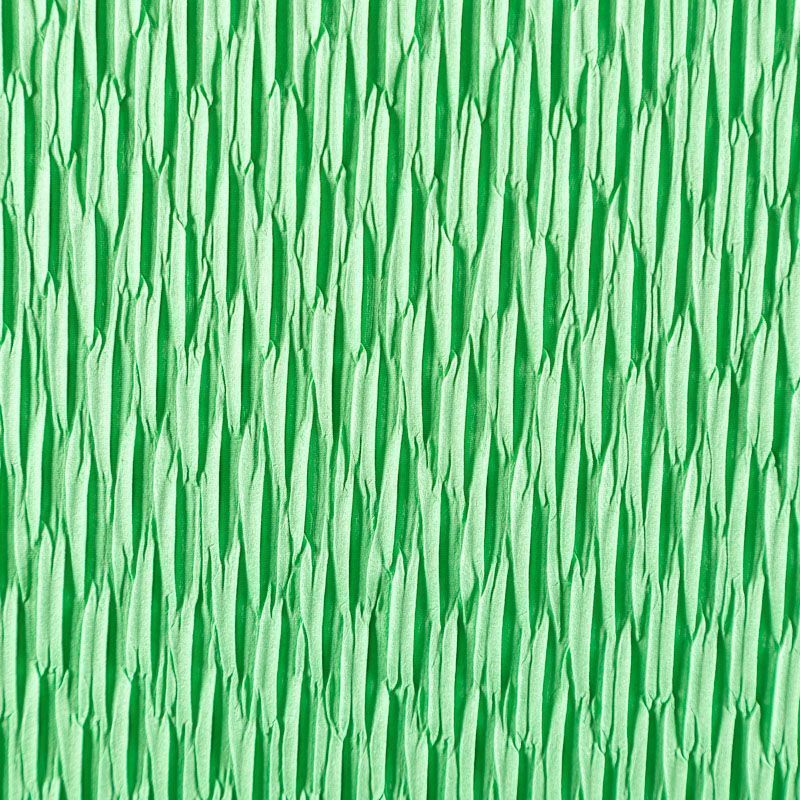 Итальяская качественная, красивая и приятная на ощупь лайкра с фактурной гофрированной поверхностью в зеленом оттенке. Идеально облегает фигуру, тянется по двум направлениям, хорошо драпируется, отлично держит форму, устойчива к пилингу, долговечна и гигроскопична. Используется для пошива одежды для танцев, гимнастики, фигурного катания, для велоспорта, легкой атлетики и аэробики, фитнеса и других видов спорта, для купальников, женского белья, театральных, цирковых и эстрадных костюмов.