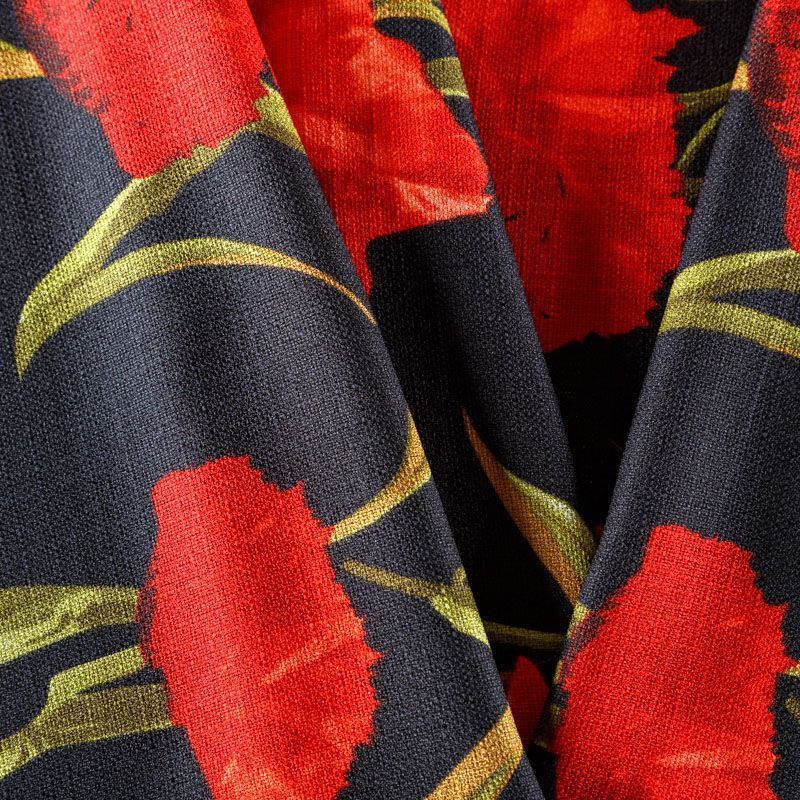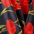 Мягкая, пластичная ткань черного цвета с ярким цветочным принтом, с выразительной матовой рельефной поверхностью и полотняным переплетением, хорошо драпируется, тянется. Прекрасно подойдет для пошива брюк, шорт, юбок, платьев, сарафанов, жакетов, кардиганов.