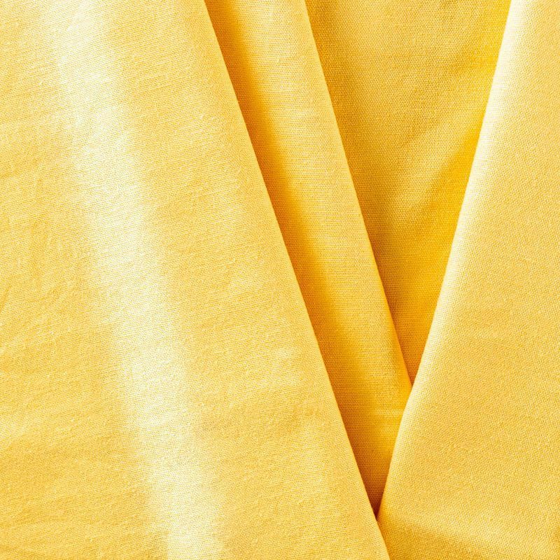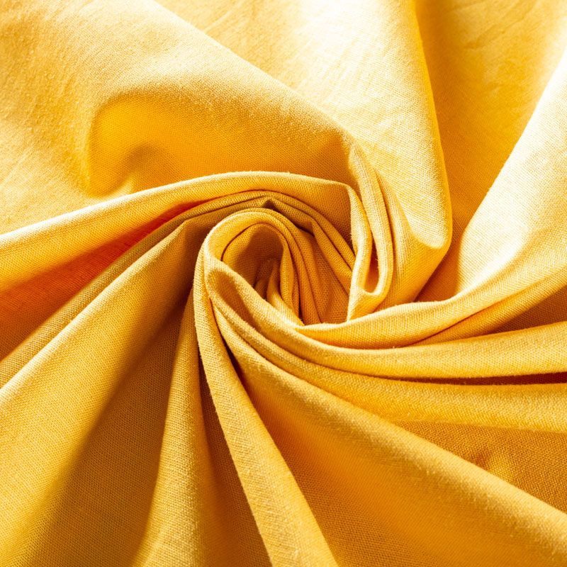 Льняная плательная ткань с добавлением вискозы в цвете золотистой охры. Материал прочный, с выразительной матовой рельефной поверхностью, полотняным плетением, хорошо держит форму, мягкий на ощупь, пластичный, отлично драпируется. Прекрасно подойдет для пошива летних платьев, сарафанов, юбок, рубашек, брюк и шорт.