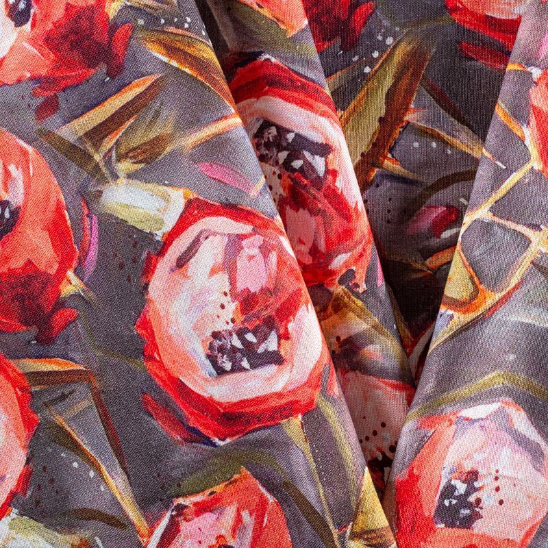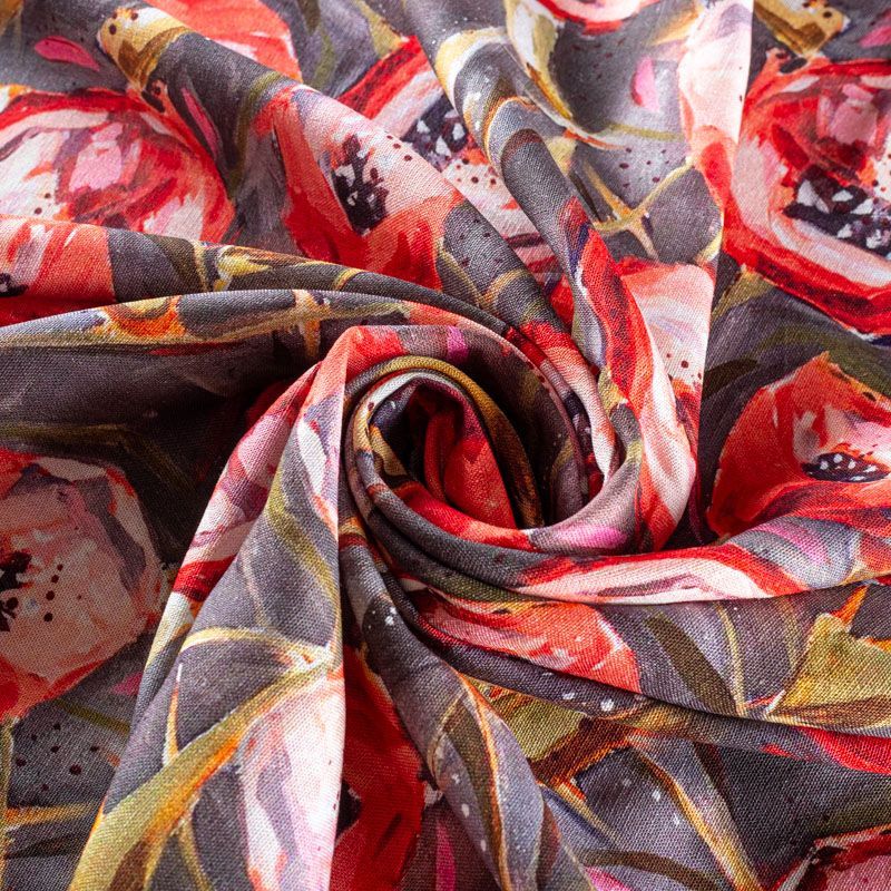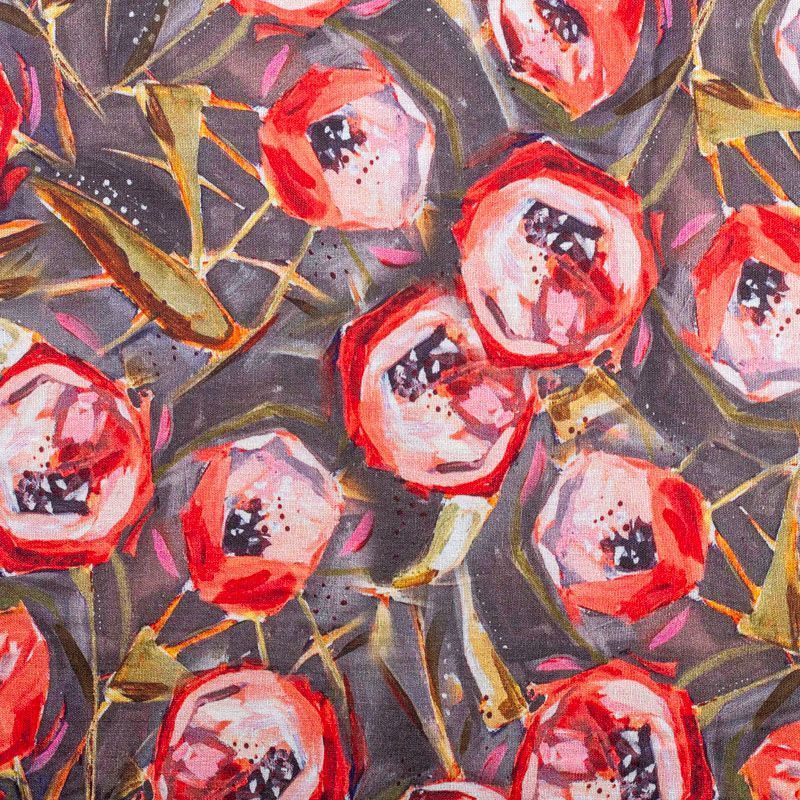 Льняная костюмно-плательная ткань серого оттенка с ярким абстрактно-цветочным принтом. Ткань прочная и плотная, с выразительной матовой рельефной поверхностью и полотняным переплетением, отлично держит форму, комфортная в изделии. Стильный вариант для летних пальто, кардиганов, платьев, сарафанов, юбок, жакетов, брюк или шорт.