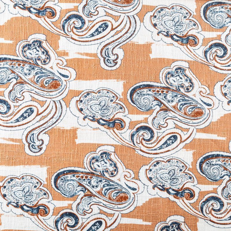 Итальянский костюмно-плательный лен с богатым принтом пейсли на коричневом фоне. Ткань прочная, имеет матовую рельефную поверхность и полотняное переплетение, отлично держит форму, пластичная, комфортная в изделии. Отлично подойдет для пошива для летних костюмов, рубашек, туник, платьев, сарафанов, юбок, жакетов, брюк или шорт.