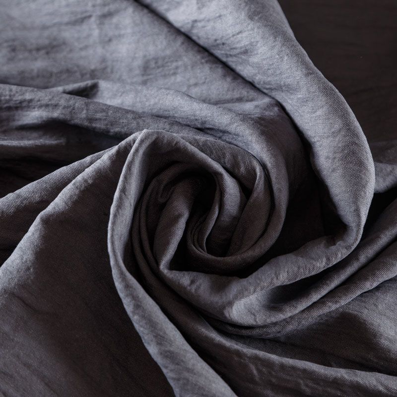 Фактурный итальянский жатый лен в сложном сером оттенке. Ткань благодаря фактуре не мнется, не светит, сухая, не струится, имеет смесовый состав и идеальную плотность, поэтому отлично подойдет как для платьев и сарафанов, так и для брюк, юбок, комбинезонов.