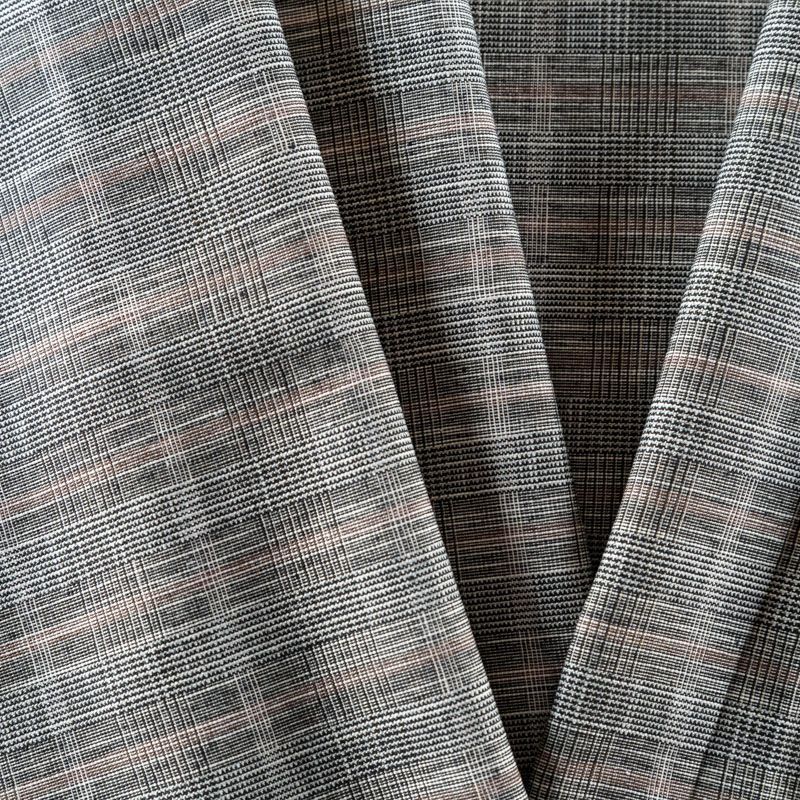 Итальянский костюмно-плательный лен в клетку в сером оттенке. Ткань прочная, имееет на ощупь приятную поверхность, а визуально - выраженный рельеф и полотняное переплетение, держит форму, немного суховатая. Подойдет для пошива костюмов, брюк, шорт, в том числе мужских, юбок, платьев, сарафанов, топов, комбинезонов, жакетов, кардиганов.