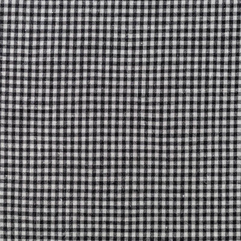 Прочный, выразительная матовая рельефная поверхность, полотняное переплетение, отлично держит форму, жестковатый на ощупь, но комфортный в изделии. Стильный вариант для платьев, сарафанов, юбок, топов, брюк или шорт. Льняная костюмно-плательная ткань с принтом в мелкую черную клеточку.
