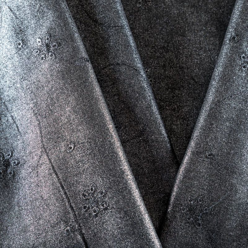 Лен натуральный с вышивкой и напылением 035-07919 антрацит