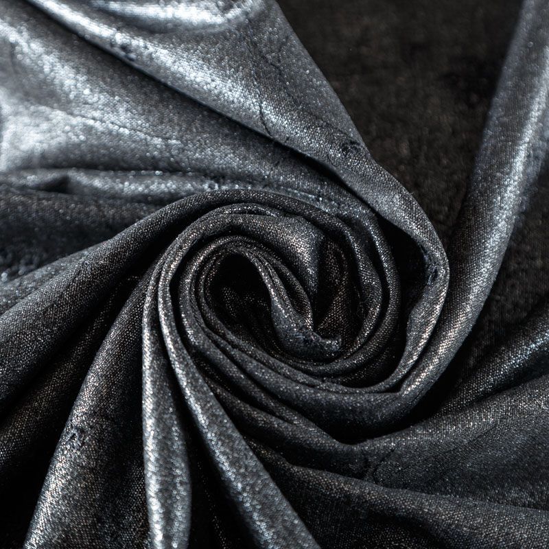 Оригинальный натуральный лен декорирован серебристым напылением и элегантной вышивкой по всему полотну. Ткань хорошо держит форму, не жесткая, отлично драпируется, тянется за счет эластана в составе. Прекрасно подойдет для пошива летних платьев, костюмов, жакета, сарафанов, туники, юбки, рубашки, брюк и шорт.