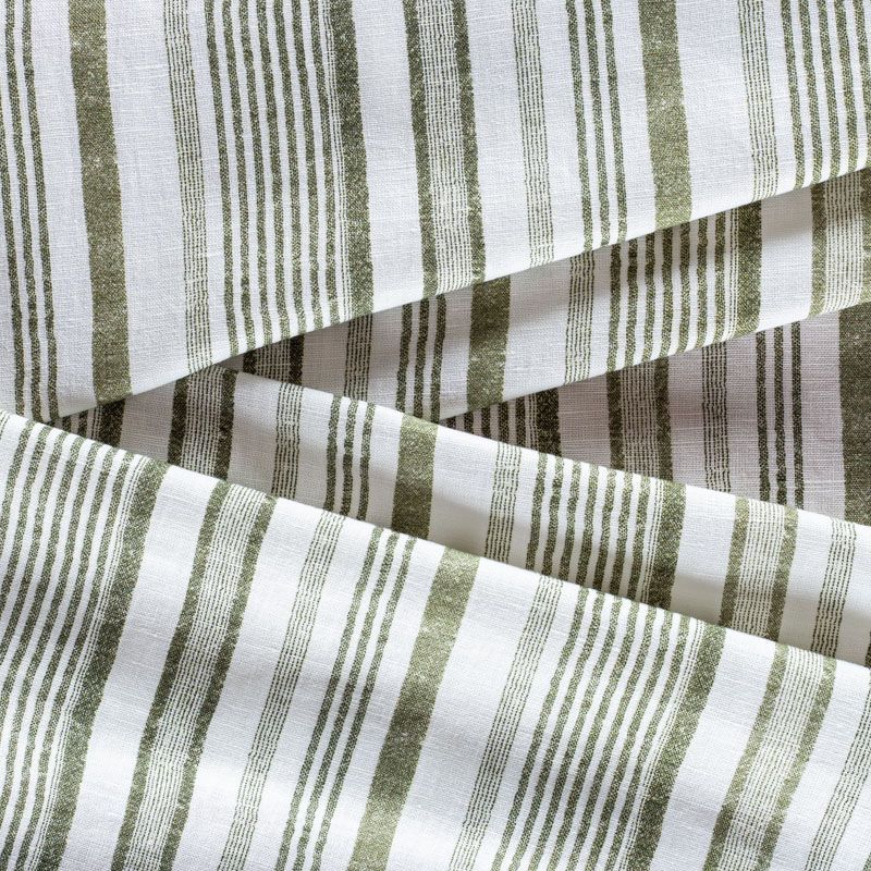 Итальянский лен с добавлением вискозы средней плотности с принтом в разноразмерную вертикальную полоску. Ткань прочная, имееет выразительную матовую рельефную поверхность и полотняное переплетение, хорошо держит форму. Подойдет для пошива весенне-летних костюмов, платьев, брюк, шорт, топов, сарафанов.