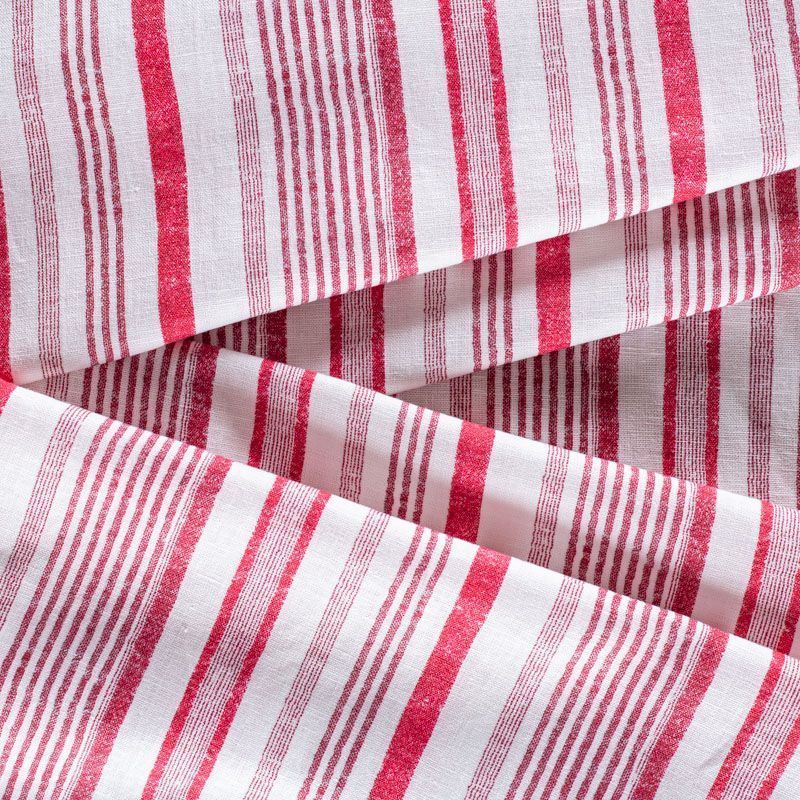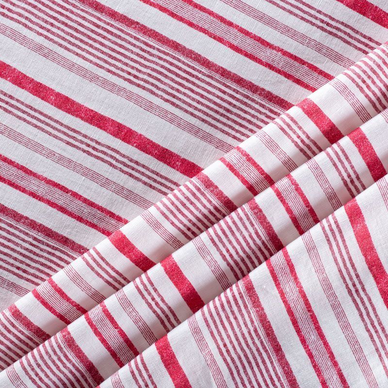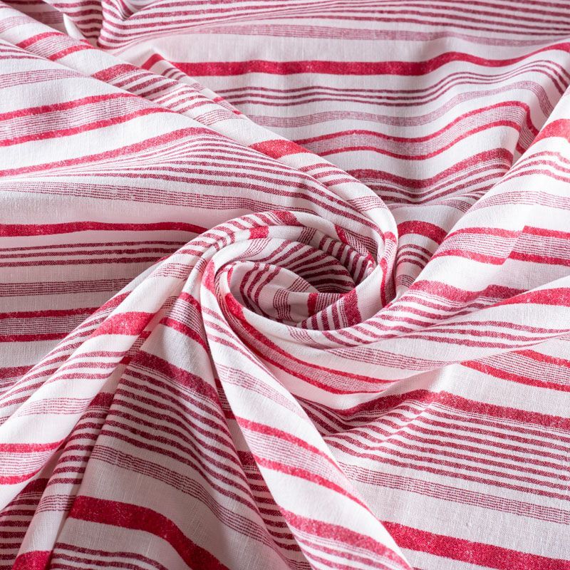 Итальянский лен с добавлением вискозы средней плотности с принтом в разноразмерную вертикальную полоску. Ткань прочная, имееет выразительную матовую рельефную поверхность и полотняное переплетение, хорошо держит форму. Подойдет для пошива весенне-летних костюмов, платьев, брюк, шорт, топов, сарафанов.