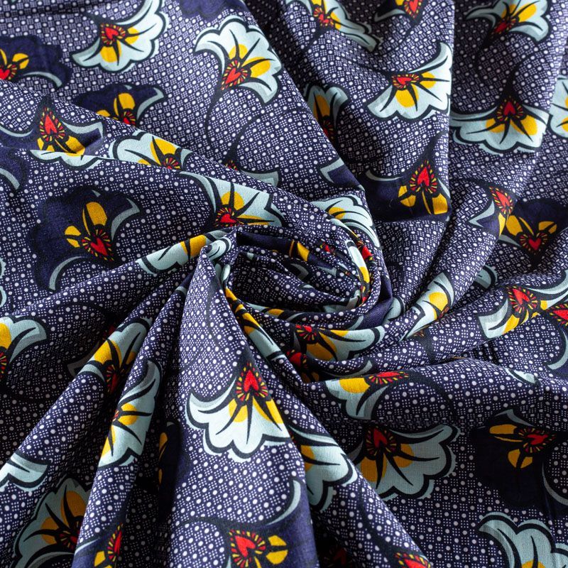 Итальянский плательно-рубашечный лен с добавлением вискозы темно-синего оттенка со стилизованным цветочным принтом. Ткань прочная, имееет выразительную матовую рельефную поверхность и полотняное переплетение, хорошо держит форму. Подойдет для пошива брюк, шорт, юбок, платьев, сарафанов, топов, комбинезонов, жакетов, кардиганов.