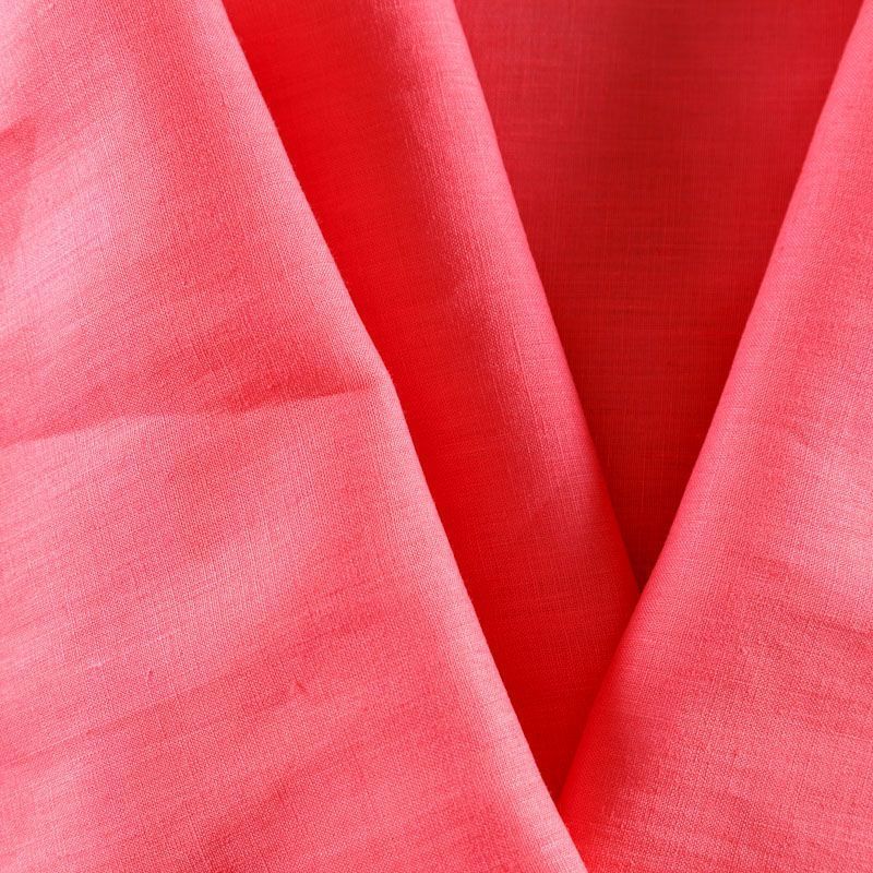 Итальянский костюмно-плательный лен с добавлением вискозы в ярком коралловом оттенке. Ткань прочная, имееет на ощупь приятную, гладкую поверхность, а визуально - выраженный рельеф и полотняное переплетение, держит форму, пластичная. Подойдет для пошива костюмов, брюк, шорт, юбок, платьев, сарафанов, топов, комбинезонов, жакетов, кардиганов.