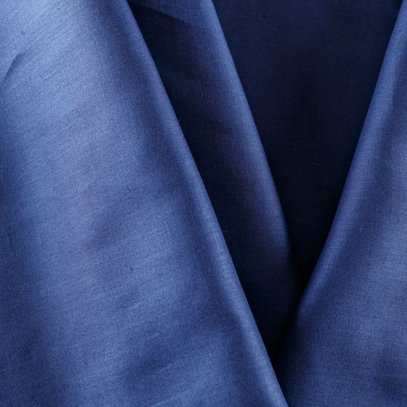Итальянский плательно-рубашечный лен с добавлением вискозы в глубоком синем оттенке. Ткань прочная, имееет на ощупь приятную, гладкую поверхность, а визуально - выраженный рельеф и полотняное переплетение, держит форму, пластичная. Подойдет для пошива рубашек, брюк, шорт, юбок, платьев, сарафанов, топов, туники, комбинезона.