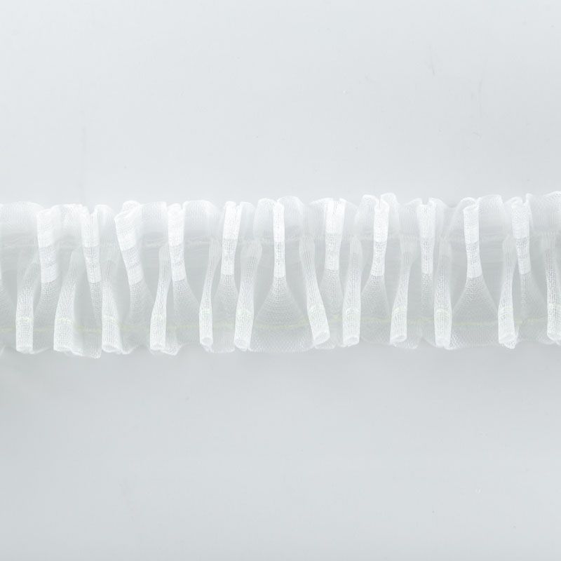 Шторная лента полностью прозрачная для тюлей и легких портьерных тканей c вафельной складкой. Сокращение - 1:2,5, раппорт - 6 см, 2 ряда кармашков, крепление - крючки.