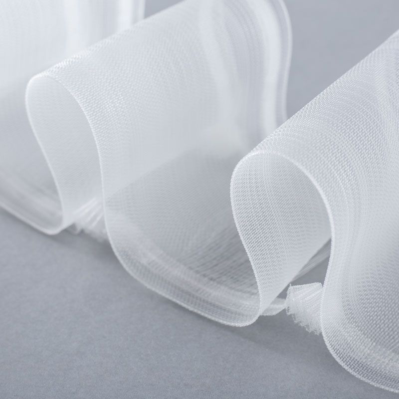 Шторная лента полностью прозрачная для тюлей и легких портьерных тканей с вафельной сборкой. Сокращение - 1:2,5, раппорт - 6,5 см, 2 ряда кармашков, крепление - крючки.