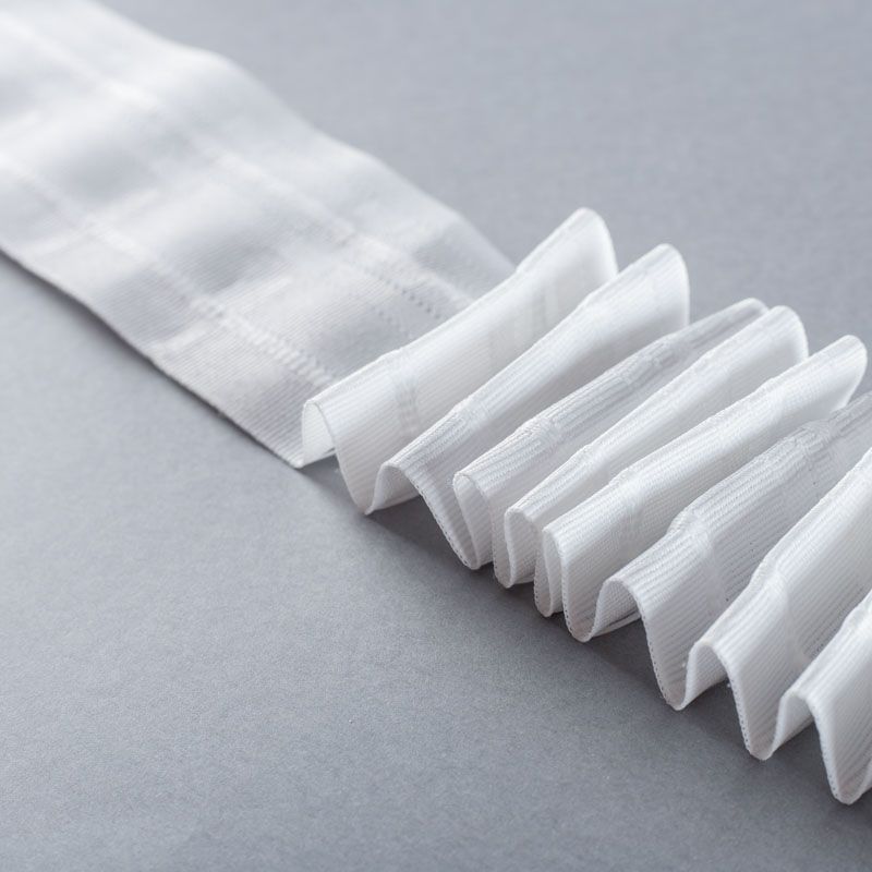Шторная лента мягкая, не прозрачная для плотных тюлевых полотен и портьерных тканей c карандашной складкой. Сокращение - регулируемое, произвольное, 2 ряда белых текстильных кармашков, стягивается на 4 нитки, крепление - крючки.