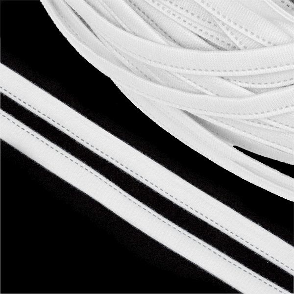 Лента тоннельная однострочная используется для продевания в нее каркаса и создания необходимой поддержки груди. Изготавливается из нескольких слоев материала с подогнутыми вовнутрь срезами, закрепленными сварным двухлинейным швом.