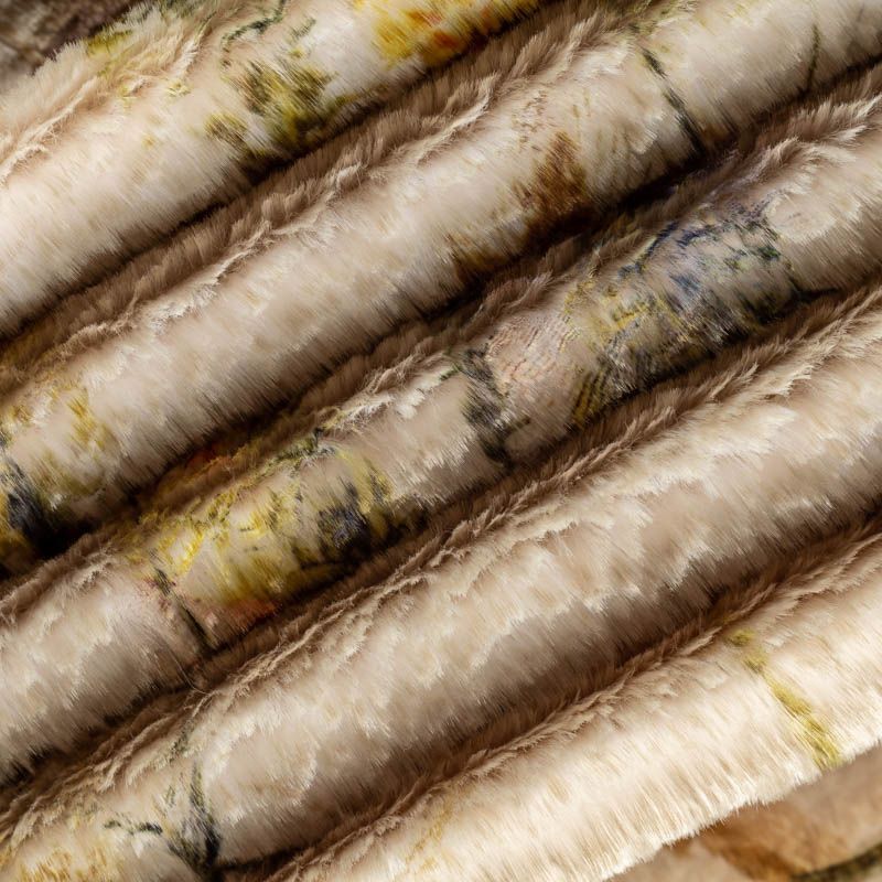 Искусственный мех, имитирующий кролика. На оливковом фоне оранжевые, молочные, желтые цветы. Красивое осеннее сочетание оттенков. Полотно мягкое, плюшевое, с коротким нежным ворсом. Имеет красивый лоск и приятную гладкую фактуру. Мех не мнется, не скатывается, долго сохраняет свой вид, очень уютный. Не тяжелый, отлично драпируется. Идеально подойдет для пошива шубки, мехового пальто, бомбера, куртки.