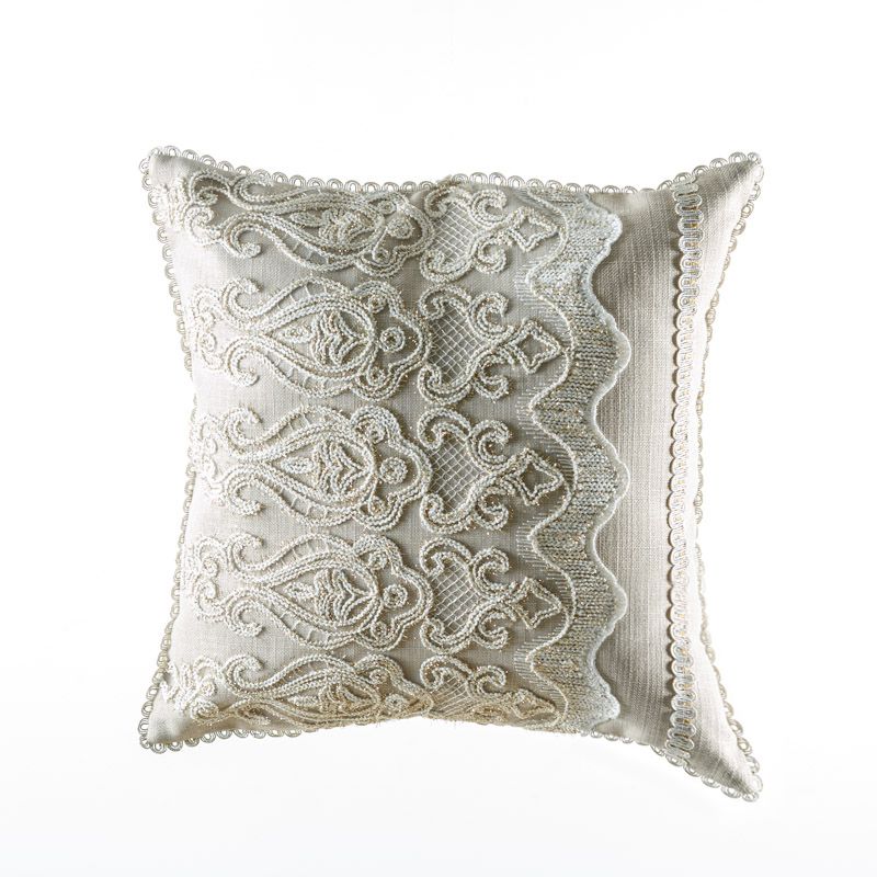 Оригинальная дизайнерская наволочка на подушку 40х40 см. Декорирована ажурной тесьмой и тюлевым полотном. Потайная молния расположена в нижнем шве. Декоративные подушки сделают акцет на цветовой гамме Вашего помещения, подчеркнут особенности интерьерного стиля или тематику оформления. Внимание! Подушка-вкладыш или синтепон приобретаются отдельно.