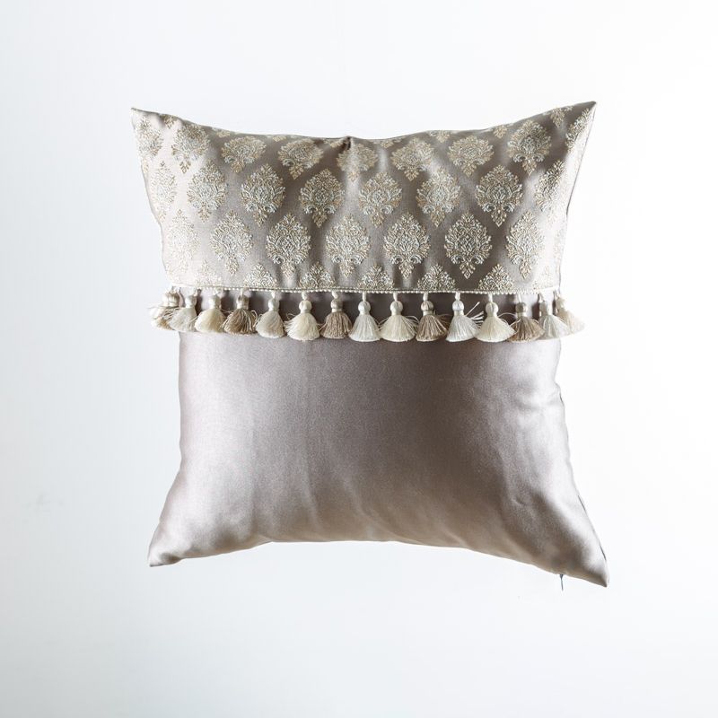 Оригинальная дизайнерская наволочка на подушку 45х45 см. Выполнена из бархата и жаккарда и декорирована бахромой. Потайная молния расположена в нижнем шве. Декоративные подушки сделают акцет на цветовой гамме Вашего помещения, подчеркнут особенности интерьерного стиля или тематику оформления. Внимание! Подушка-вкладыш или синтепон приобретаются отдельно.