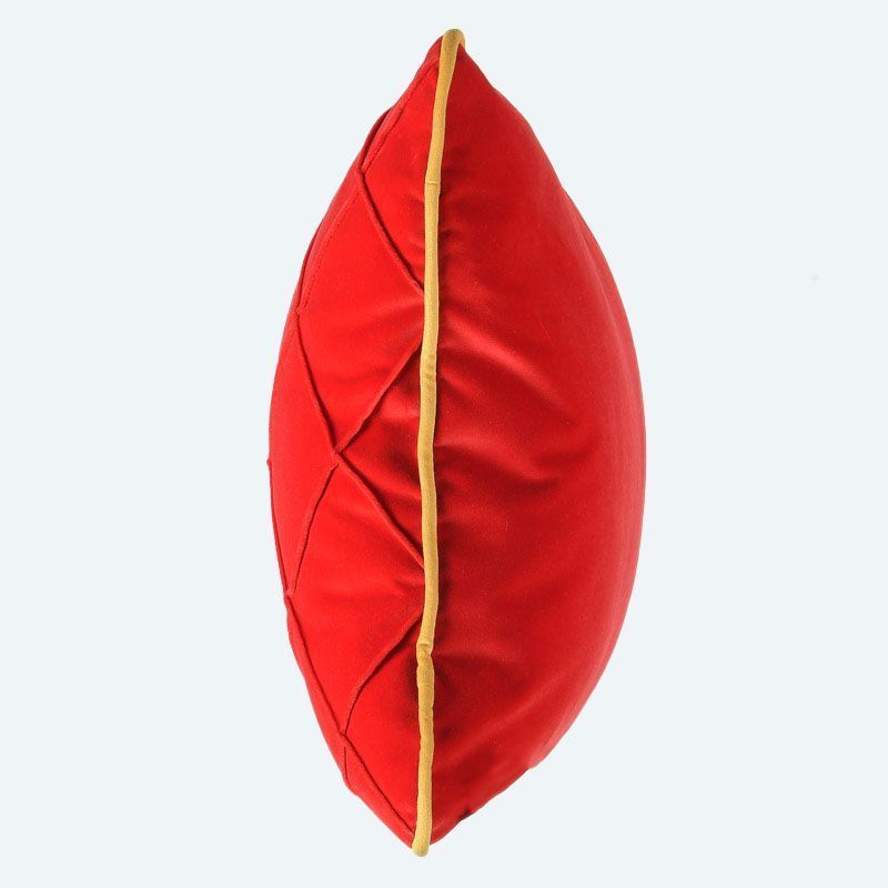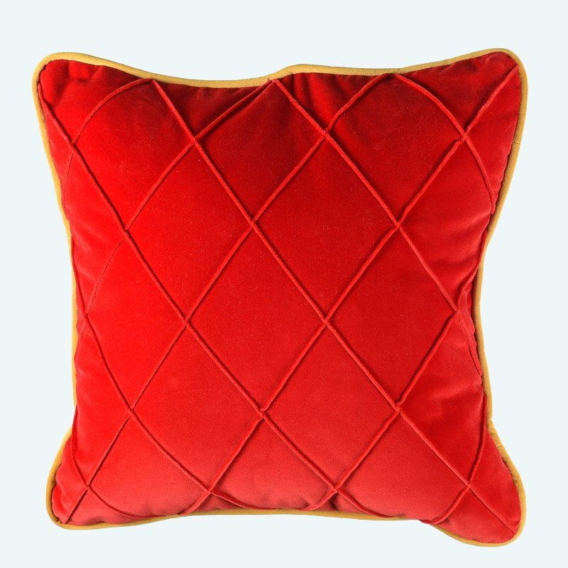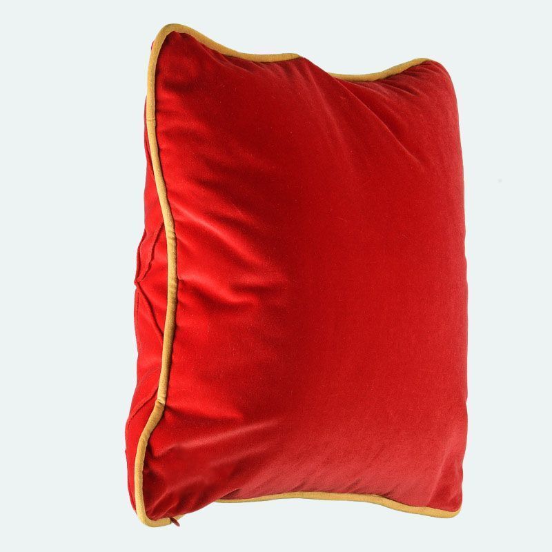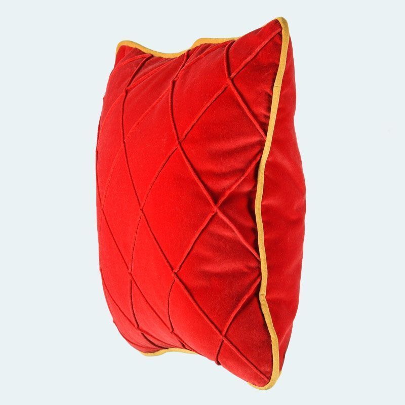 Оригинальная дизайнерская наволочка на подушку 45х45 см выполнена из однотонного красного бархата, декорирована стежкой и контрастным кантом. Потайная молния расположена в нижнем шве. Декоративные подушки сделают акцет на цветовой гамме Вашего помещения, подчеркнут особенности интерьерного стиля или тематику оформления. Внимание! Подушка-вкладыш или синтепон приобретаются отдельно.