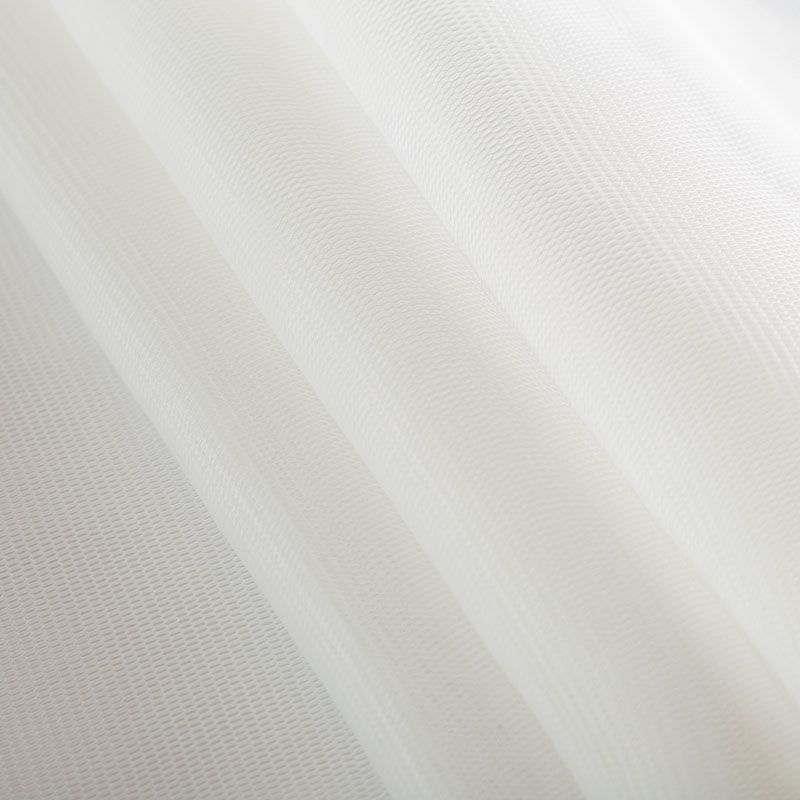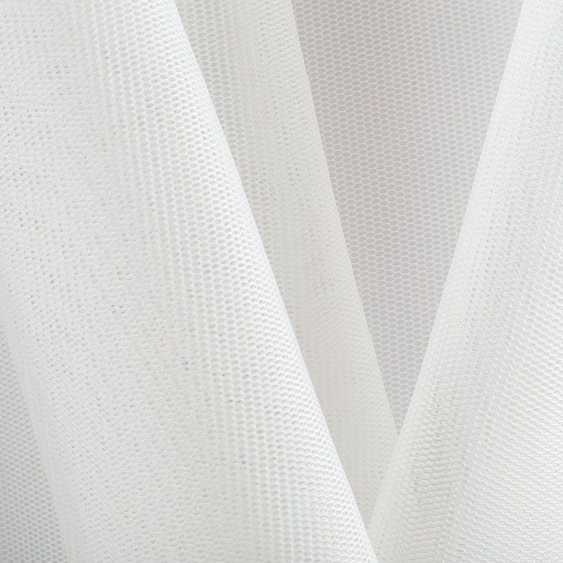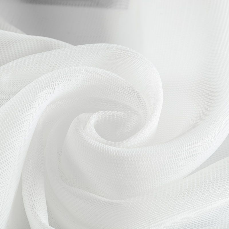 Объемный, эластичный материал белого цвета, состоящий из двойной мелкой сетки, по форме напоминающей соты. Упругое, мягкое с полупрозрачной фактурой полотно, пластичное и довольно прочное. Хорошо тянется, легкое и комфортное. Отлично держит форму. Рекомендуется для пошива объемных изделий или элементов: эксклюзивного жакета, бомбера, платья, юбки.