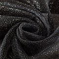 Объемный, эластичный материал черного цвета с золотистым напылением, состоящий из двойной мелкой сетки, по форме напоминающей соты. Упругое, мягкое с полупрозрачной фактурой полотно, пластичное и довольно прочное. Хорошо тянется, легкое и комфортное. Отлично держит форму. Рекомендуется для пошива объемных изделий или элементов: эксклюзивного жакета, бомбера, платья, юбки.