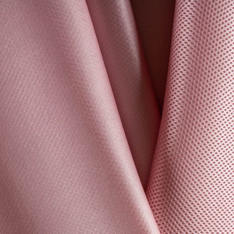 Полотно трехслойное, два слоя тонкой сеточки между которыми прослойка из эластичных волокон. Упругое, мягкое с полупрозрачной фактурой. Хорошо тянется, легкое и комфортное. Отлично держит форму. Размер ячейки около 3 мм. Рекомендуется для пошива объемных изделий или элементов: эксклюзивного жакета, бомбера, платья, юбки.