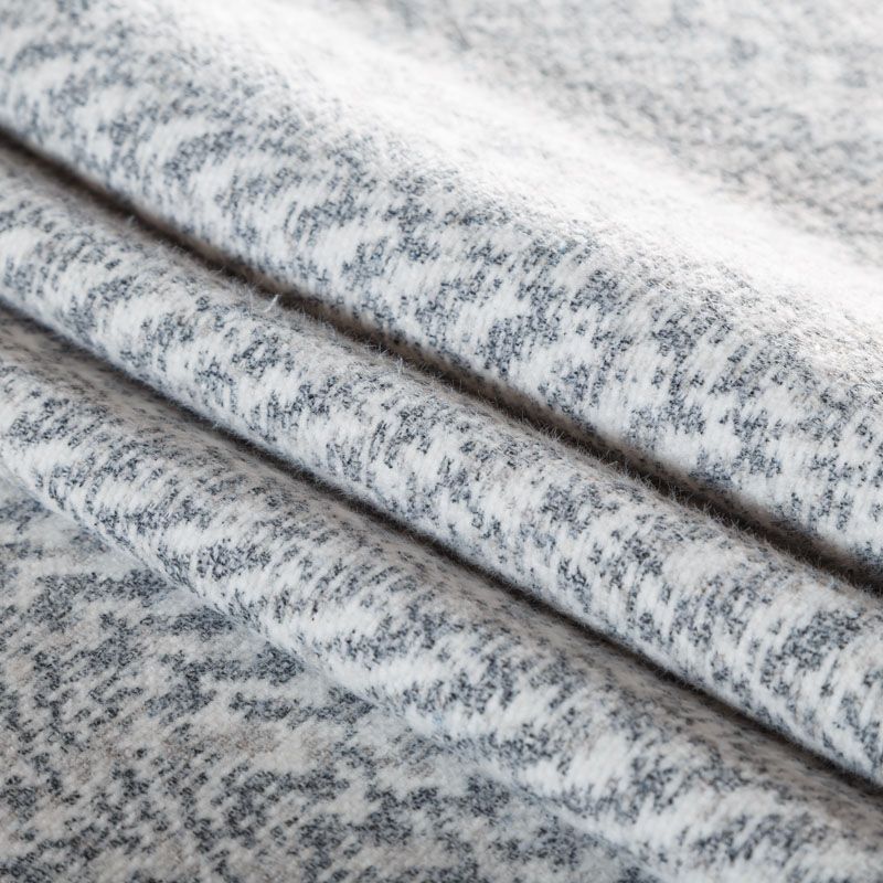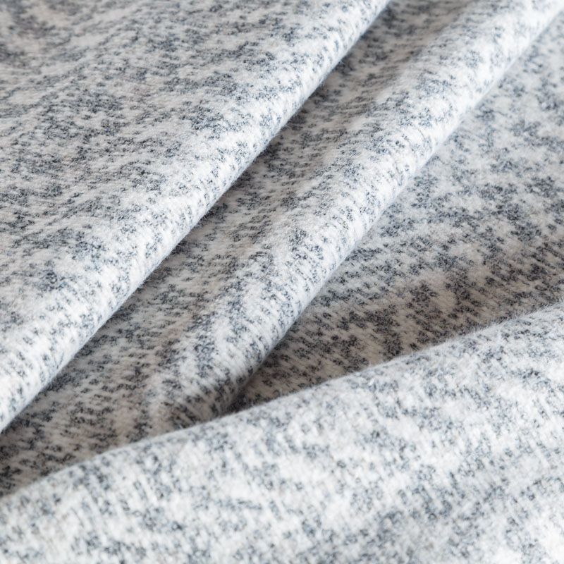 Плотный двухслойный пальтовый трикотаж белого цвета с геометрическим орнаментом серого оттенка. Ткань очень приятная на ощупь, пластичная, теплая и уютная, поверхность мягкая и шелковистая. Изнанка однотонная молочного оттенка. Прекрасно подойдет для пошива пальто, теплых жакетов, курток, кардиганов, костюмов.