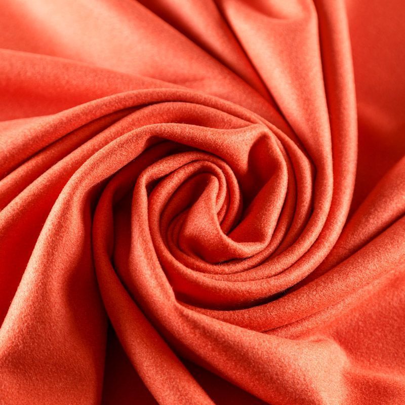 Плотный пальтовый трикотаж кораллового оттенка. Ткань очень приятная на ощупь, мягкая, пластичная, теплая и уютная. Прекрасно подойдет для пошива легких пальто, пальто на подкладе, теплых жакетов, курток, кардиганов, бомбера, жилета.