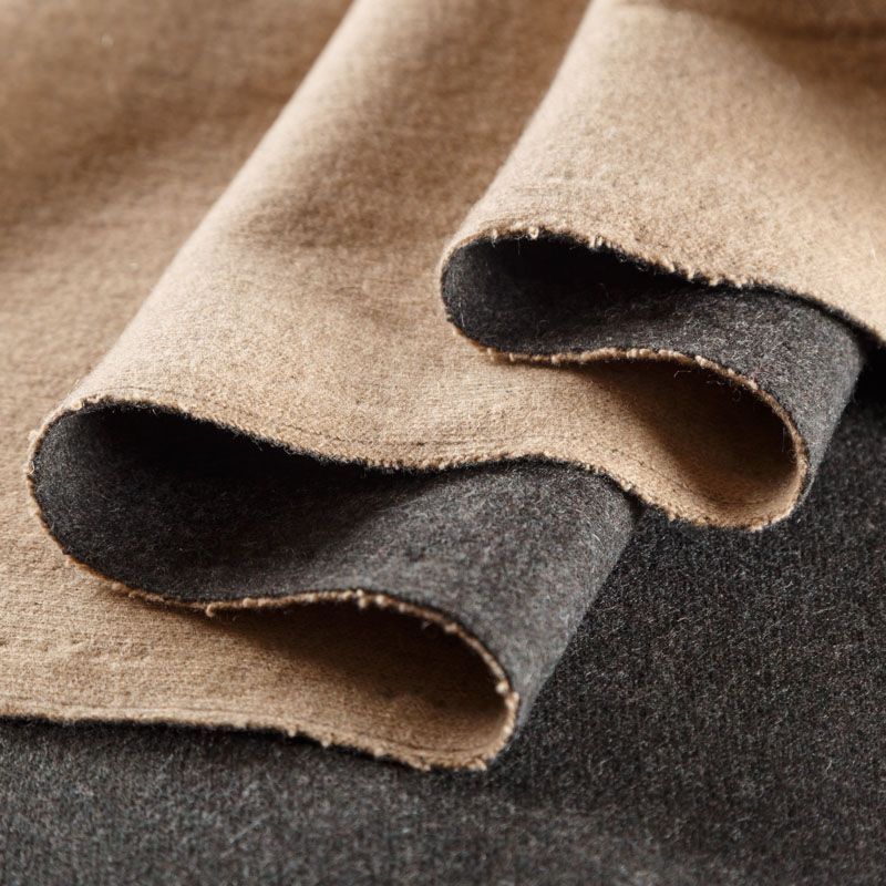 Двухслойный двусторонний итальянский шерстяной трикотаж в бежево-серой гамме. Полотно пластичное, приятное на ощупь, не колется, теплое и уютное. При соответствующей обработке швов одежду из этого трикотажа можно носить на обе стороны. Подойдет для пошива теплых кардиганов, пальто, костюмов, теплого платья, пончо, кейпа.