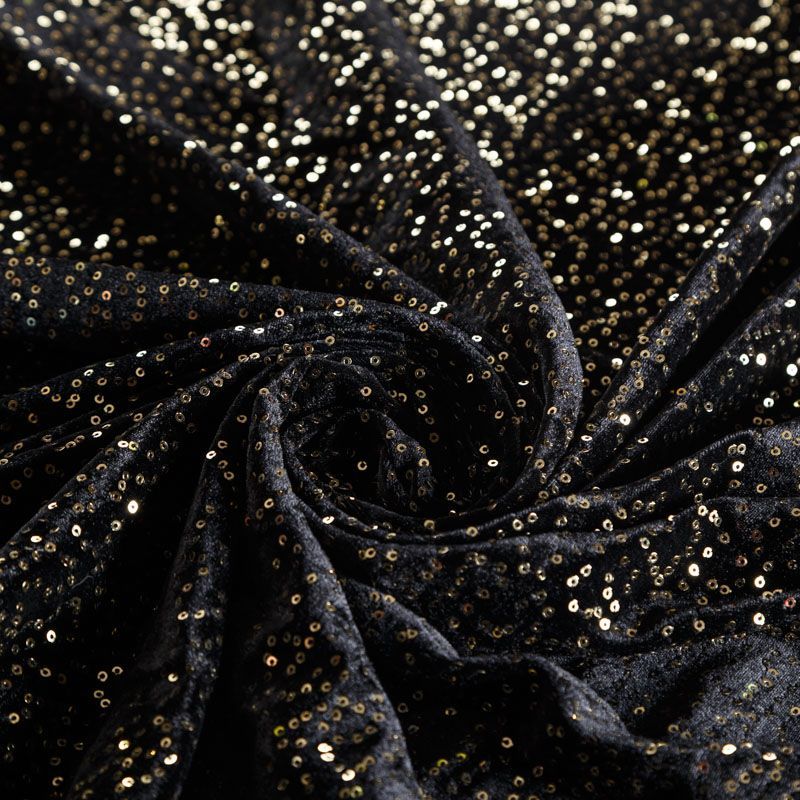 Пайетки на бархате 055-05746 черный/золото