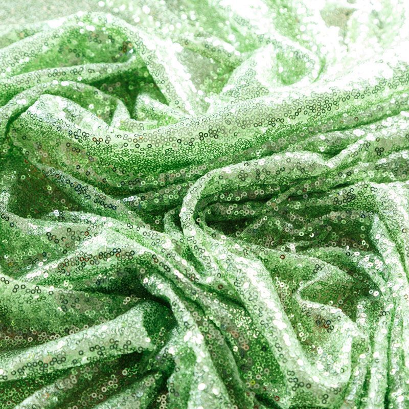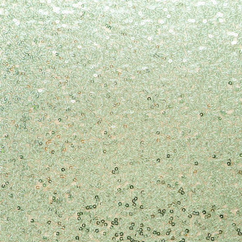 Блестящие пайетки в светло-зеленом оттенке. Мелкие, размером около 3 мм, расположены в хаотичном порядке. Основа - мягкая и эластичная сетка.  Ткань полупрозрачная, может потребоваться подклад. Подойдет для вечернего, коктейльного платья, юбки, нарядных детских изделий, танцевальных и сценических костюмов.