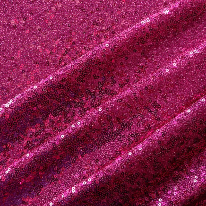 Блестящие пайетки в ярком розовом оттенке. Мелкие, размером около 3 мм, расположены в хаотичном порядке. Основа - мягкая и эластичная сетка.  Ткань полупрозрачная, может потребоваться подклад. Подойдет для вечернего, коктейльного платья, юбки, нарядных детских изделий, танцевальных и сценических костюмов.
