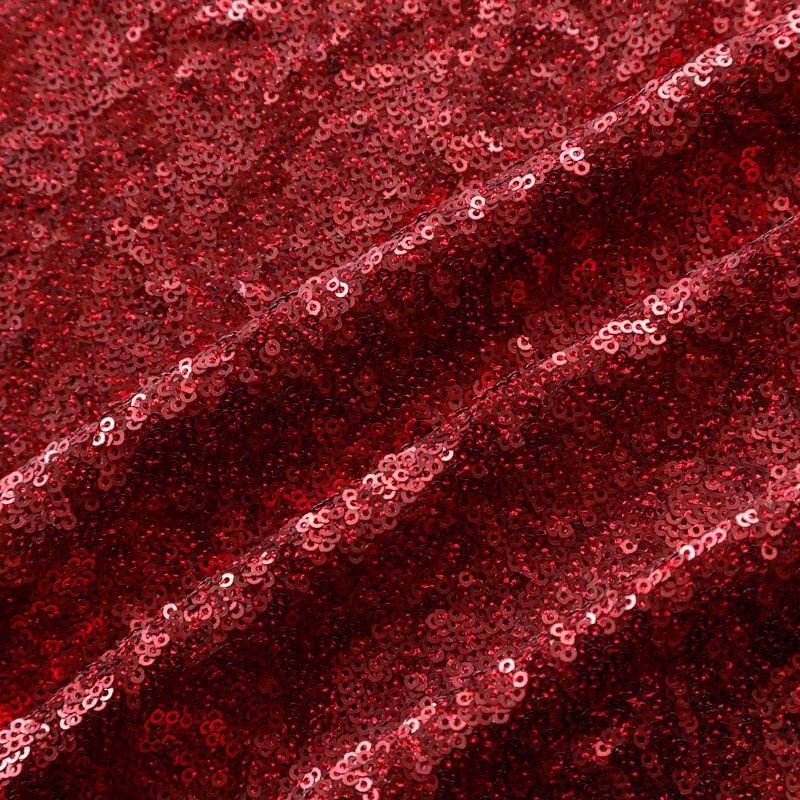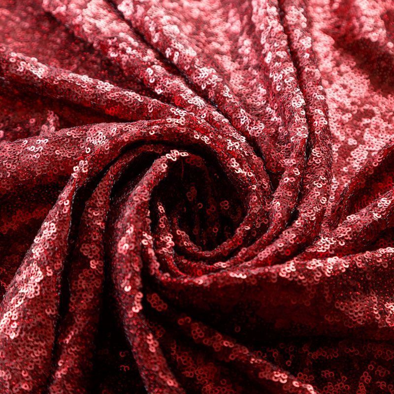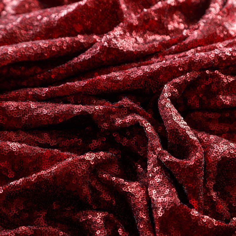 Мелкие пайетки бордового оттенка на плотной сетчатой основе. Ткань хорошо драпируется, красиво переливается, имеет глянцевый блеск. Немного тянется, благодаря чему изделия получаются комфортными и отлично сидят по фигуре. Пайетки — идеальный материал для праздников и вечеринок. Из них получится эффектное платье, туника, юбка или комбинезон.