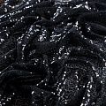 Тонкая эластичная сетка черного цвета расшита мелкими глянцевыми пайетками в тон основе. Ткань очень хорошо драпируется, красиво переливается, пластичная и эластичная и в длину, и в ширину, благодаря чему изделия получаются комфортными и отлично сидят по фигуре. Пайетки — идеальный материал для праздников и вечеринок. Из них получится эффектное платье, жакет, боди, топ, туника, юбка или комбинезон.