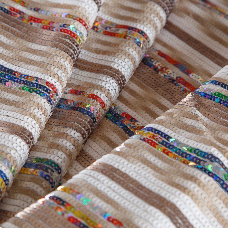 Пайетки на сетке 055-16492 бежевый/мультиколор