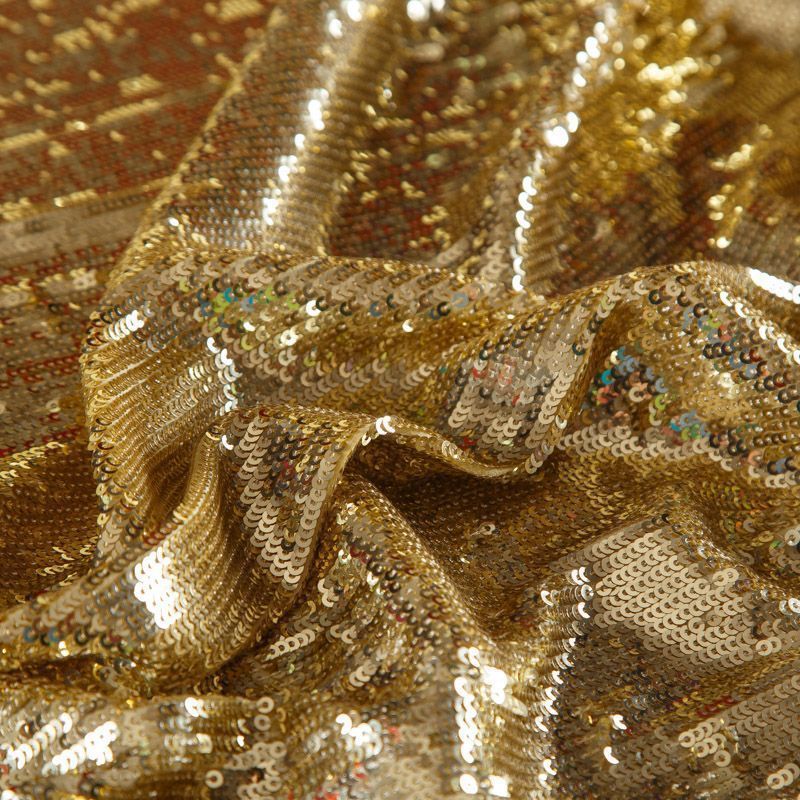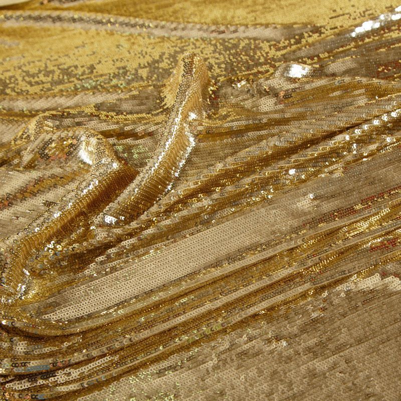 Итальянские глянцевые золотые пайетки на шифоновой основе. Ткань не тянется, не просвечивает за счет плотности пришитые пайеток.